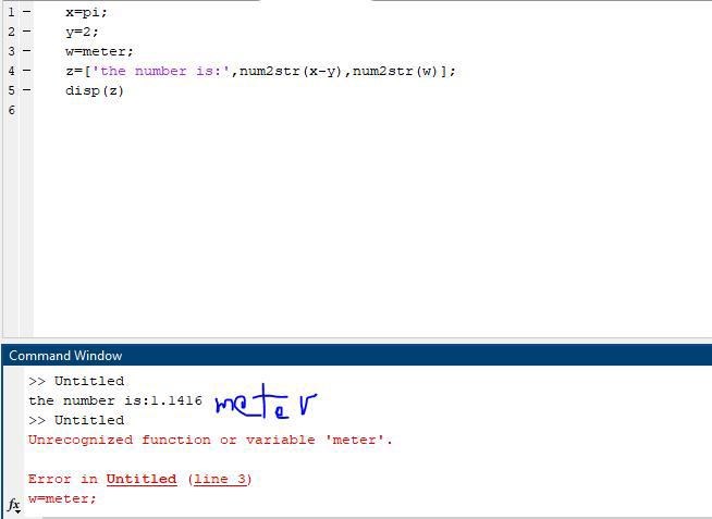z=['The number is: ', num2str(x-y), ' meter'];