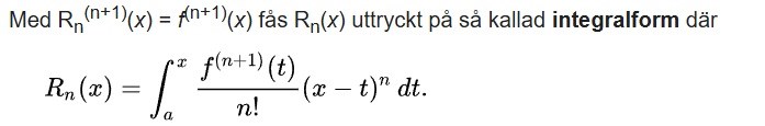 LuMa07 skrev:Satsen säger att kan approximeras bra med ett polynom i närheten av punkten (punkten är fixt och förutbestämd). Det "bäst" approximerande polynomet av grad ges av formeln .