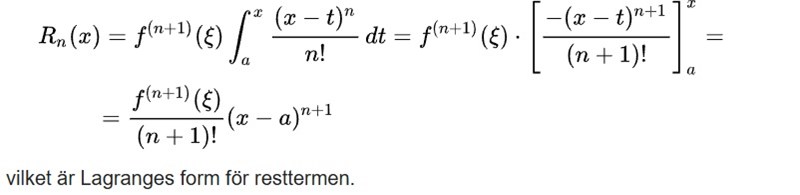 Ska också komma ihåg formeln för resttermen i lagrange form. Men vad är det egentligen som är lagrange form?
