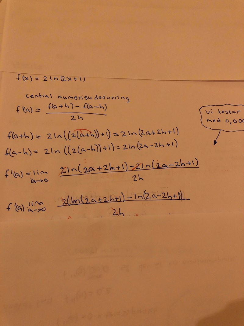 deadliftlord skrev:f(x)=2ln(2x+1) => f'(x)=4/(2x+1)?