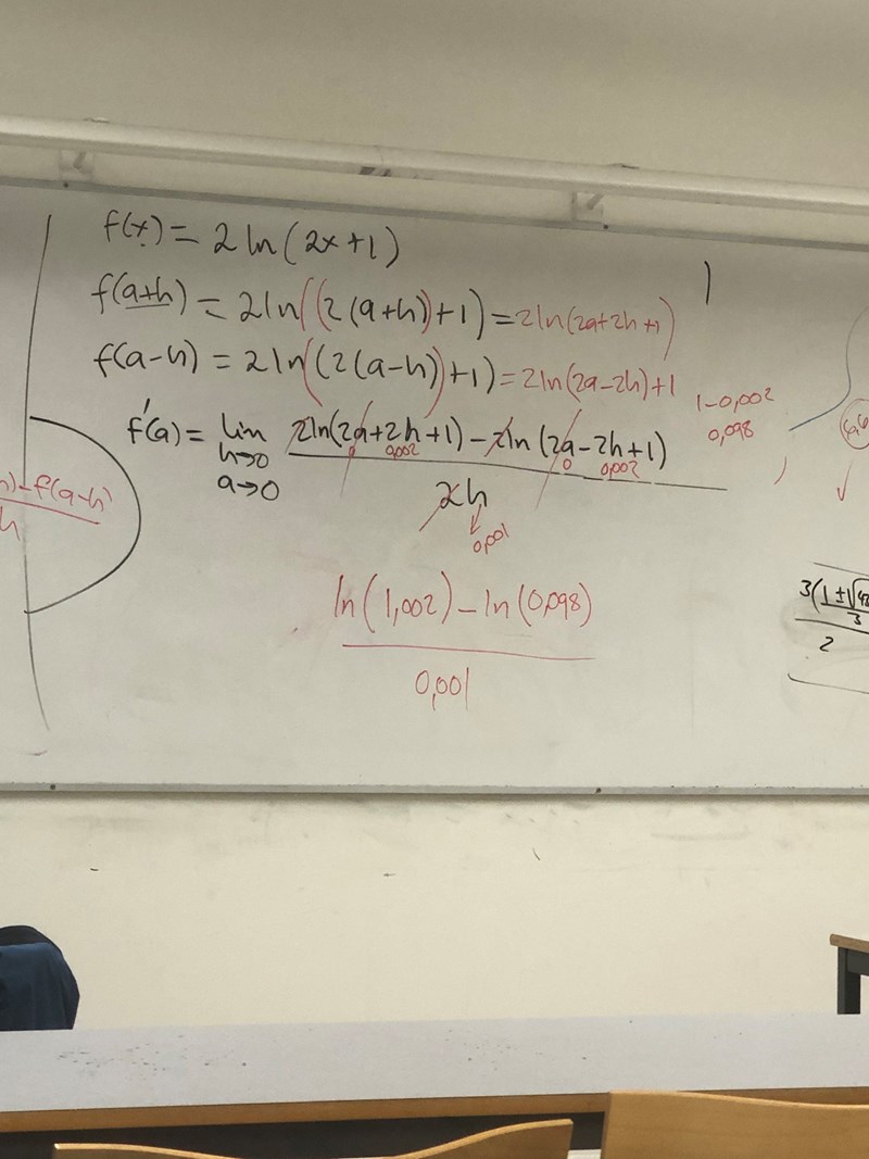 Jaha okej för vår lärare skrev att h—> kunde ersättas med a—> här för att a=o. Så här skrev han på tavlan, men förstod inte riktigt allt han menade för han skrev båda två under lim Men det är rätt som jag skrivit när jag bröt ut en 2:a för blev osäker nu för då ska jag väll ta bort de andra 2:orna i parantesen?