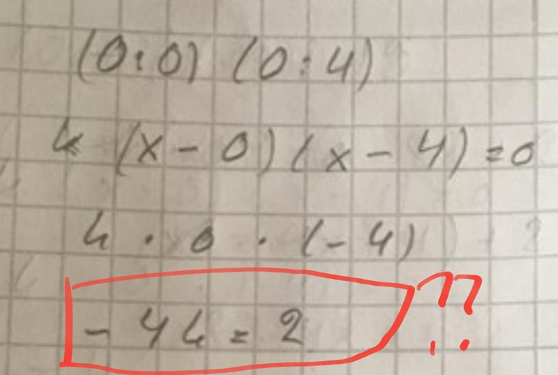 Ansatsen k(x - 0)(x - 4) = 0, dvs f(x) = kx(x - 4) är bra.