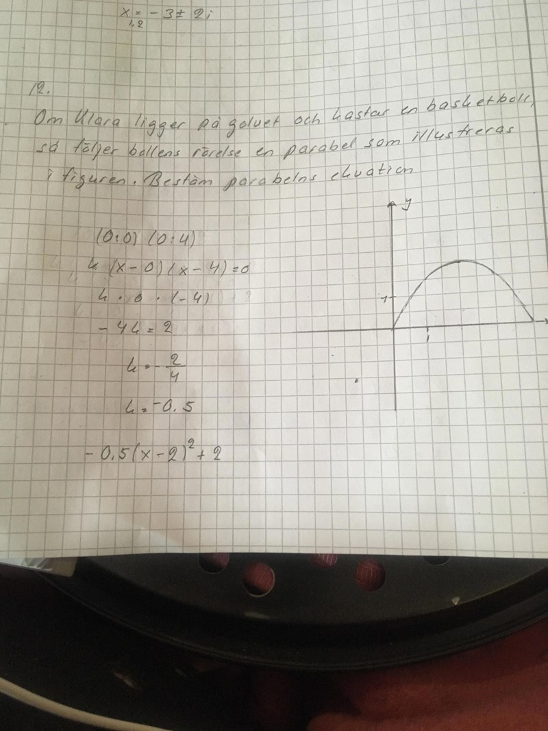 Päivi skrev :Jag tänker först på var har vi nollställen i parabeln. Jo ena finns i origo och den andra skär x =4. Sedan har vi extrempunkt eller max punkt som det också heter. Det heter även vertex. Den punkten finns nu (2:2)