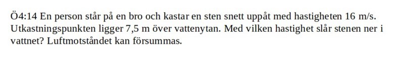 Okej, nu ser ja, vi har en utgångshastigheten eftersom stenen i uppgiften "kastas uppåt" med 16 m/s.