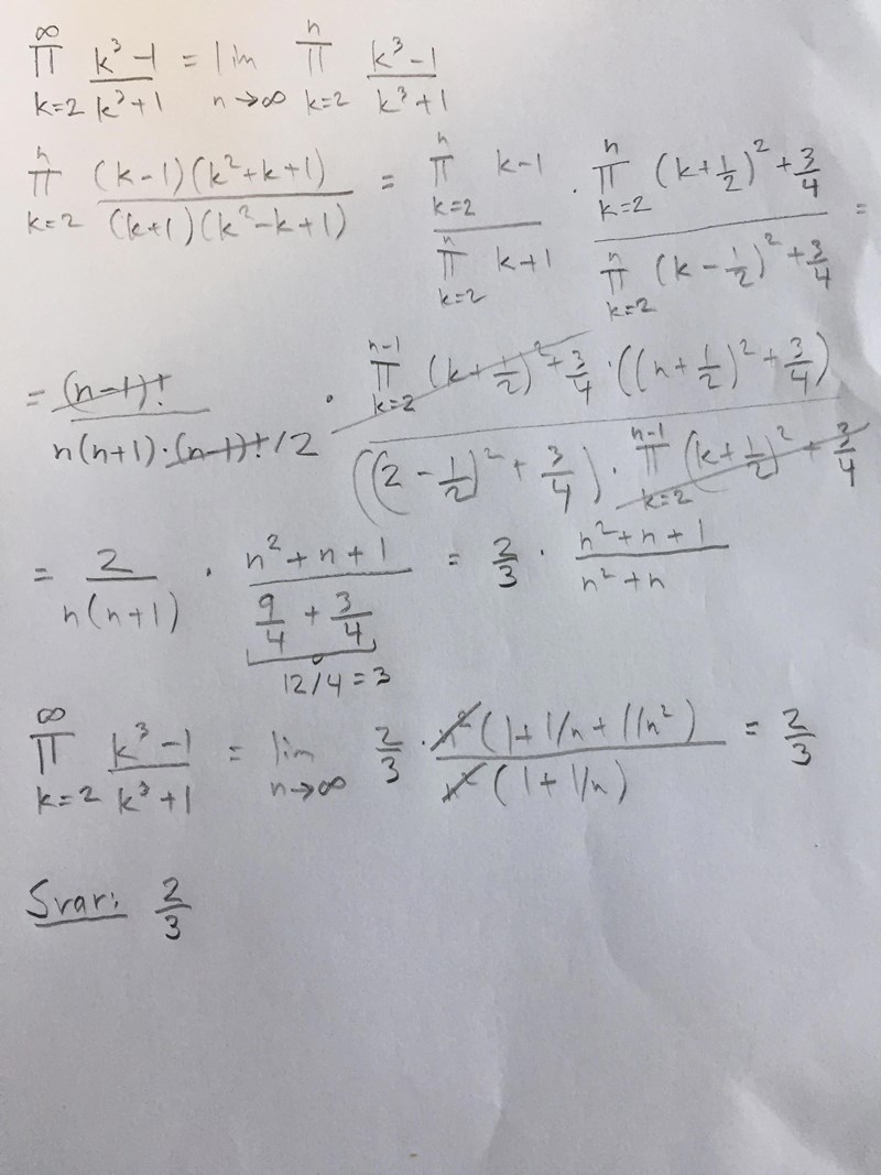 Här kommer två oändliga produkter. Uppgiften är att bestämma deras värden exakt. a)-uppgiften tycker jag är lättare än b), men det kan nog variera litegrann från person till person.