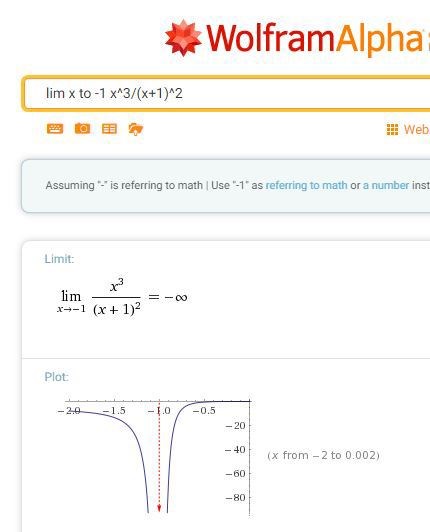 Om man tittar på den första uppgiften så ser man ju att x=-1 blir 0 i nämnaren. Om man sätter in ett oändligt stort tal som x borde det väl bli oändliget och inte minus oändlighet? om man bortser från ettan i nämnaren och får x^3/x^2
