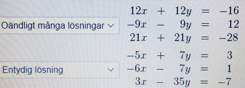Vad säger ni? Hur skulle ni tolka ekvationssystemen? Hur många lösningar finns?