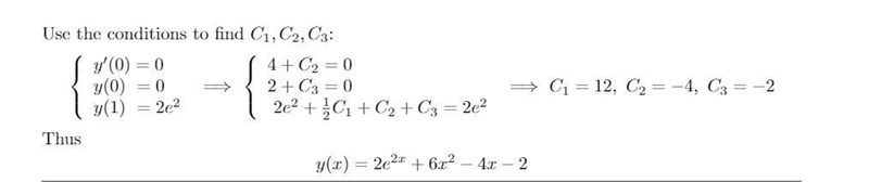 Du har ju C1 med i både y'' och y' och y, så faktorn 1/2 kan du inte "ta bort" då det påverkar på fler ställen. Då funkar inte ekvationssystemet.