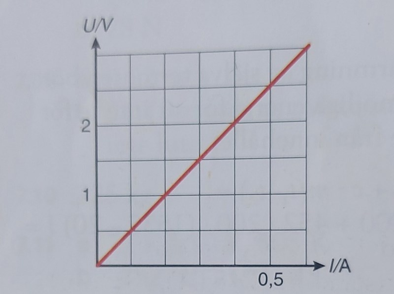 Rita en kurva som visar U som funktion av I. Använd kurvan till att avgöra om motståndet följer Ohms lag. Beräkna resistansen om motståndet är ohmskt.