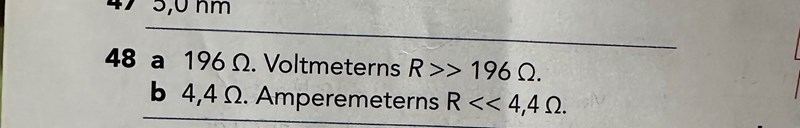 voltmetern ska ha så hög resistans som möjligt så att den ej påverkar strömmen som avläses i Ampermetern och att Ampermeter ska ha så låg resistans som möjligt så att den ej påverkar strömmen, men jag förstår inte varför svaret är som det är och varför de olika svaren är olika i a och B ?