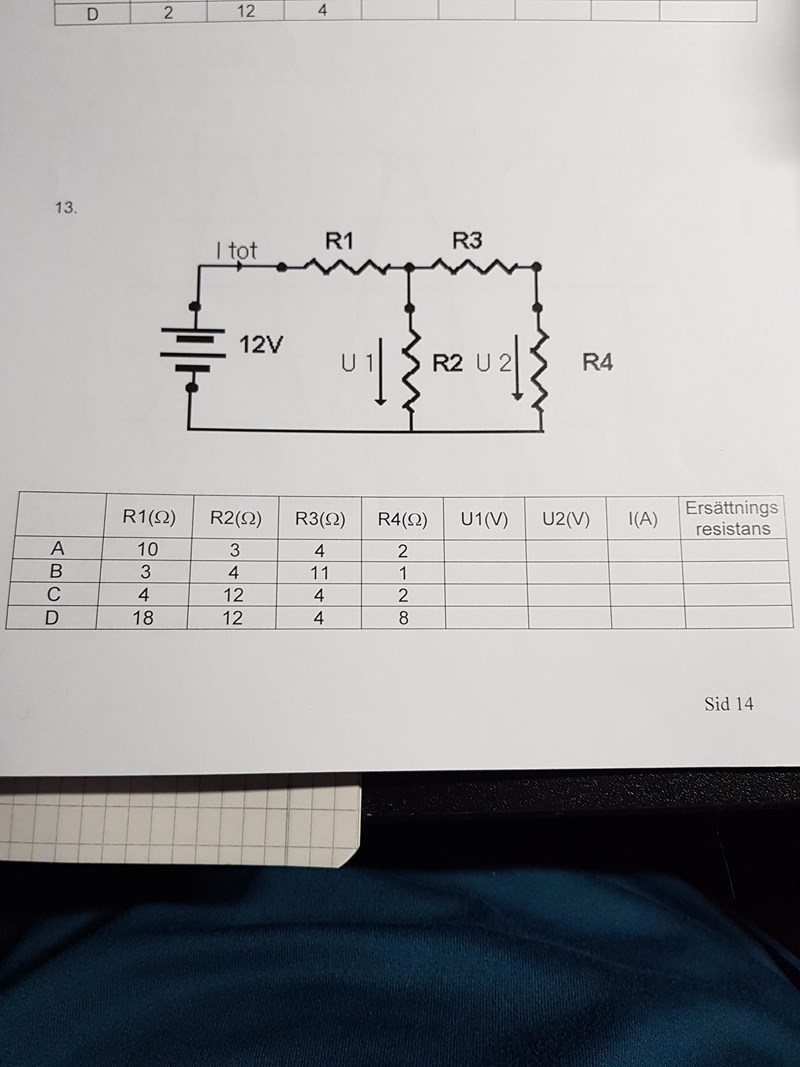 Skulle behöva lite hjälp med denna fråga, hur är det med ersättningsresistansen ligger r2 parallellt med r3+r4?