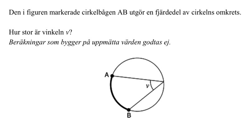 Om du ritar streck från medelpunkten till punktera A och B, hur stor blir vinkeln mellan dom?