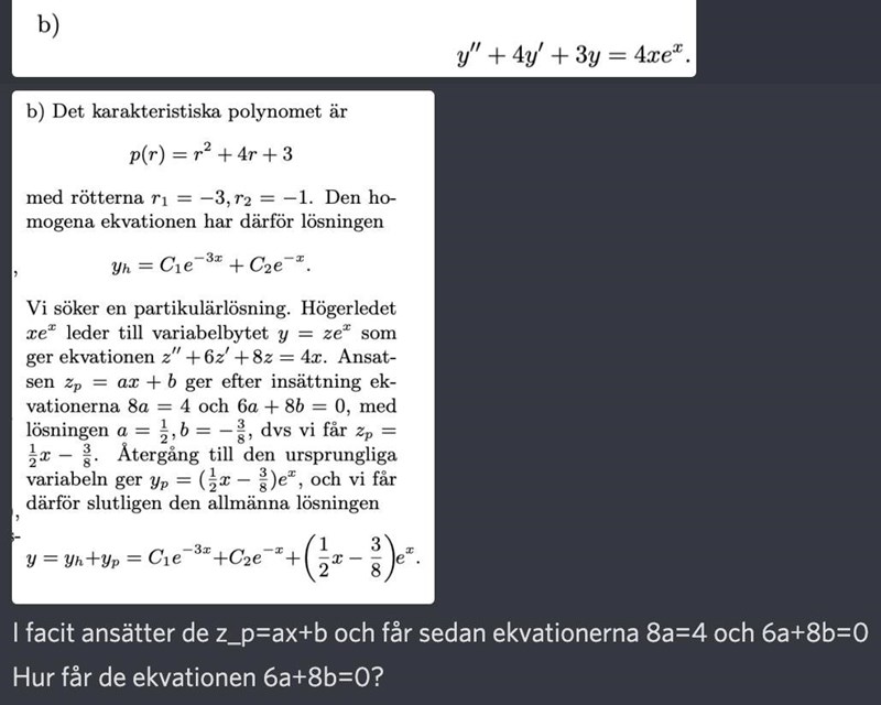Polynomansatsen deriveras och sätts in i . och andraderiv lika med noll, eller hur?