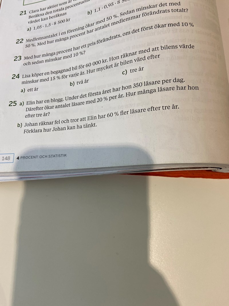 Sedan så kan du försöka multiplicera förändringsfaktorn tillsammans med talet för att få fram svaret på hur många läsare hon har efter ett år och sedan fortsätta med din beräkning därifrån.