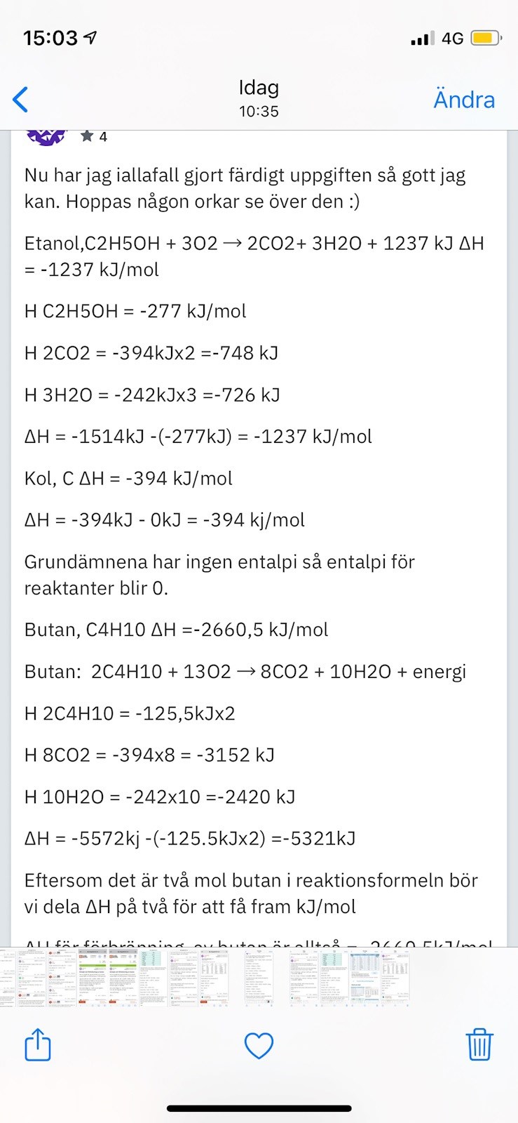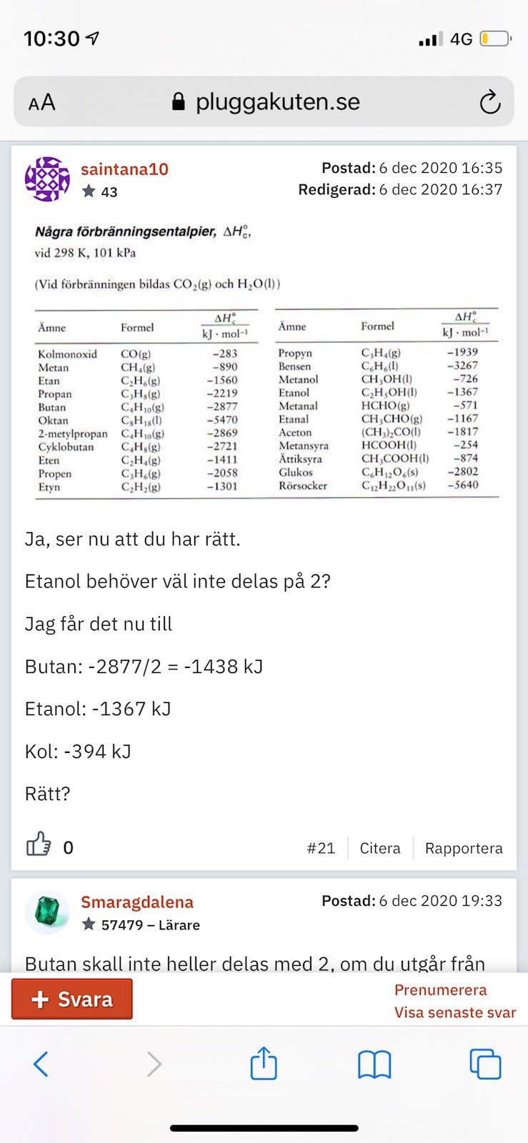 Jag vill veta hur man räknar ut butan, kol och etanol till värdena
