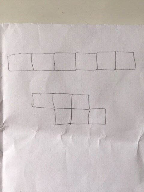 Man kan skapa olika figurer av dessa sex stycken kvadratliknande material om dessa kommer att läggas ut på golvet som ett lekutrymme. Följande är exempelskissar om figurerna.