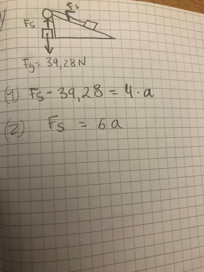Det ser ut som att du har glömt gravitationskraften på m1. (Du behöver vinkeln till det)