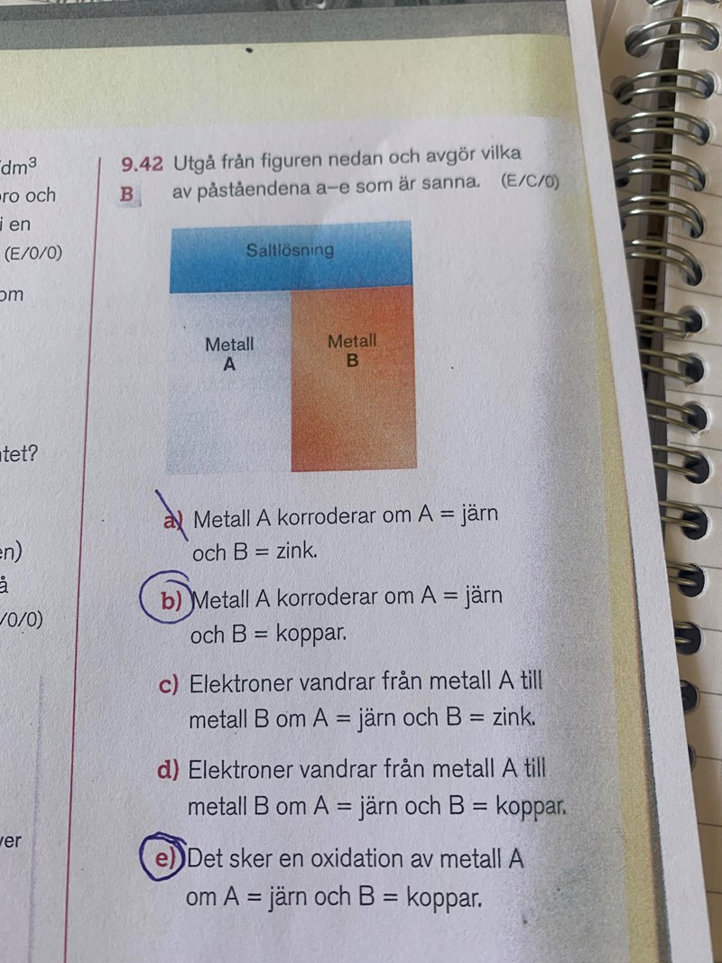 Här är en uppgift vi fick för att öva inför ety prov i oxidation/reduktion i veckan som kommer. Kan någon förklara vilka som är sanna och varför. Jag vet att det minst ädla ämnet oxideras men förstår inte så mycket mer än det