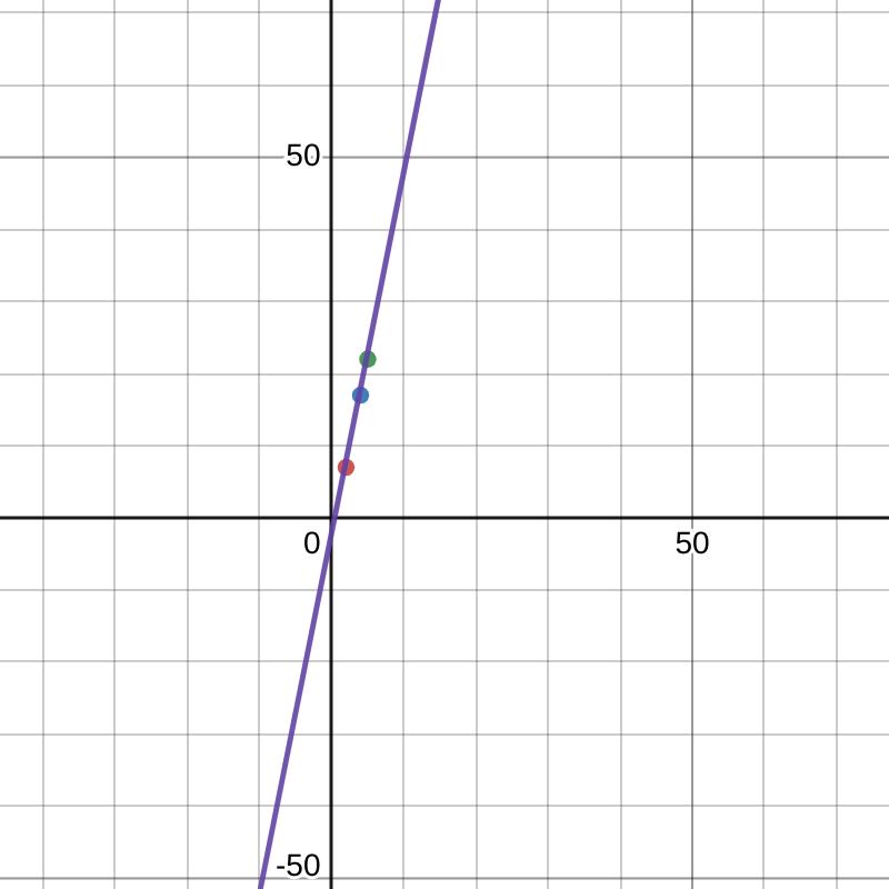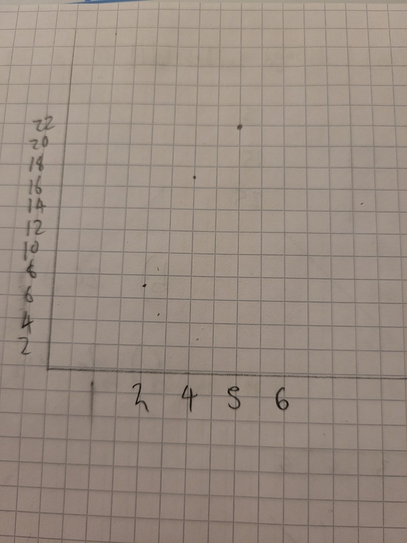 Jag har provat göra en graf för att försöka få ut den. Men det verkar inte funka. Förmodligen för att det inte är en rät linje eller så har jag gjort fel någonstans. Jag har markerat ut koordinaterna enligt värdena i tabellen.
