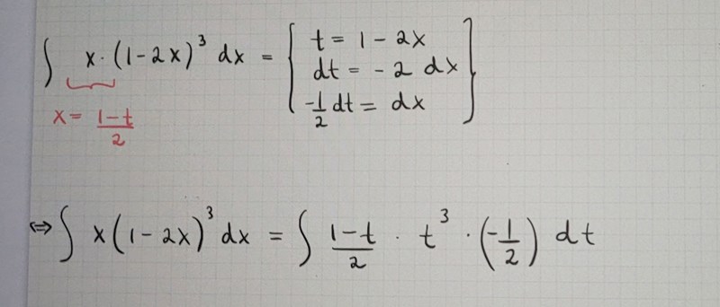 När du sätter t = 1-2x så definierar du en funktion t av x enligt t(x) = 1-2x.