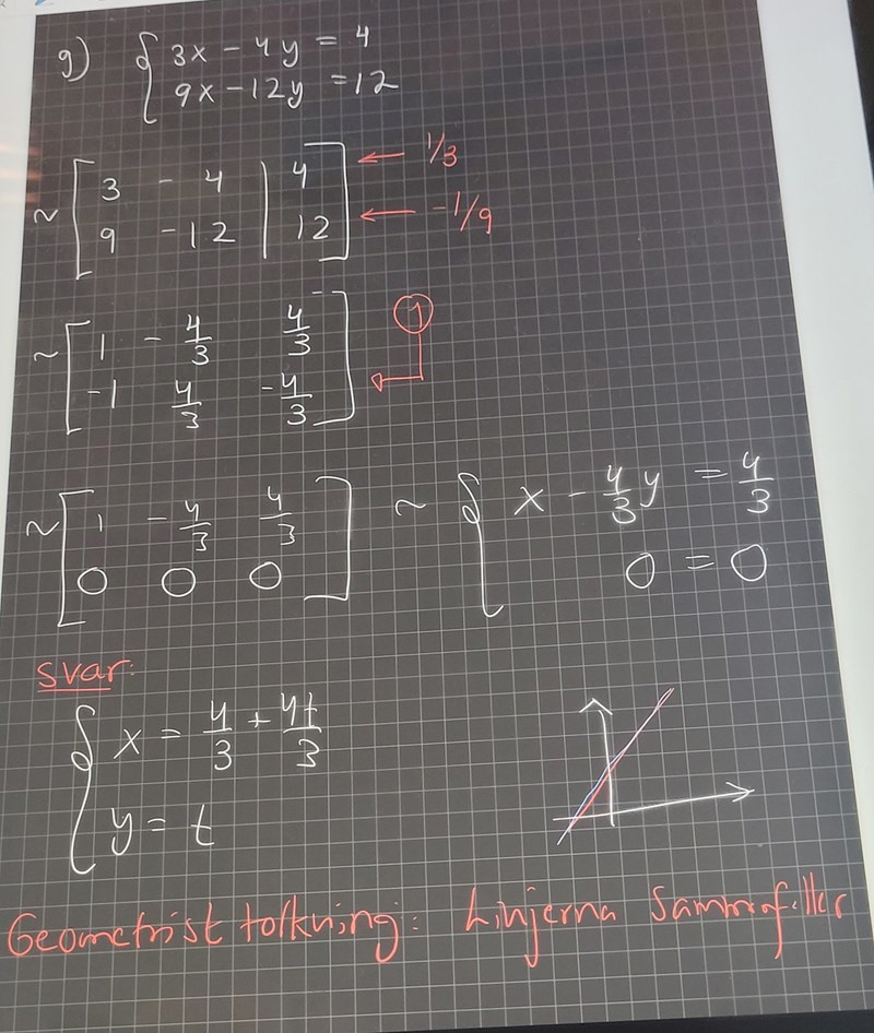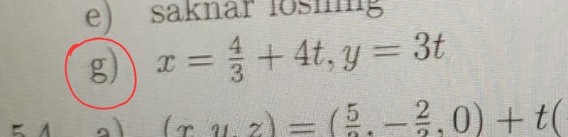 Det verkar som att facit skrivt y=3t för att undvika bråk för där t ska vara. För X står det 4/3 + 4t, så man slipper få 4t/3? Visst är det så eller har jag gjort något misstag?