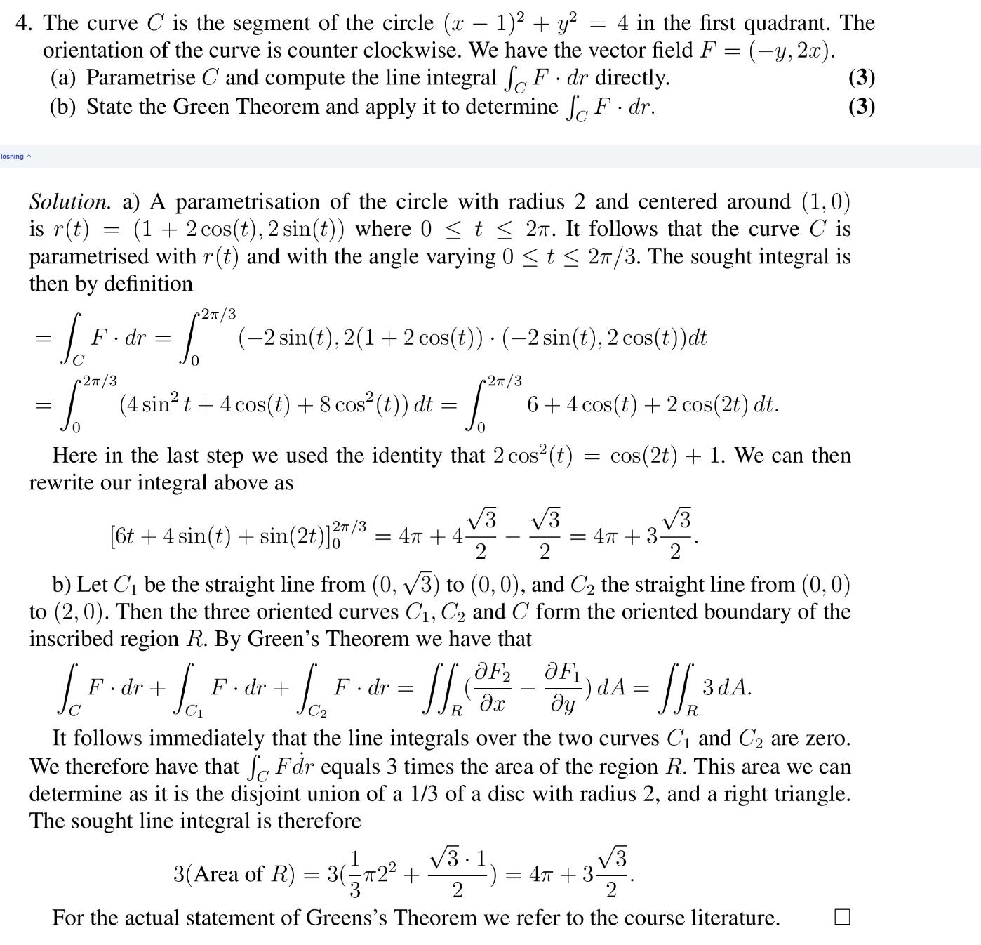 Förstår att cirkeln är centrerad kring (1,0) med radie 2 och att området är den delen som finns i första kvadranten