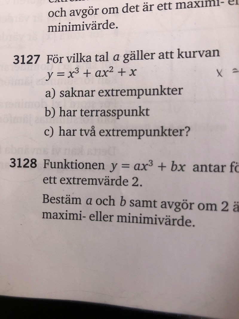 Okej, men på b) på 3127 så undrar de vad a ska vara för att få en terrasspunkt, vad kännetecknar en terrasspunkt i detta fallet?