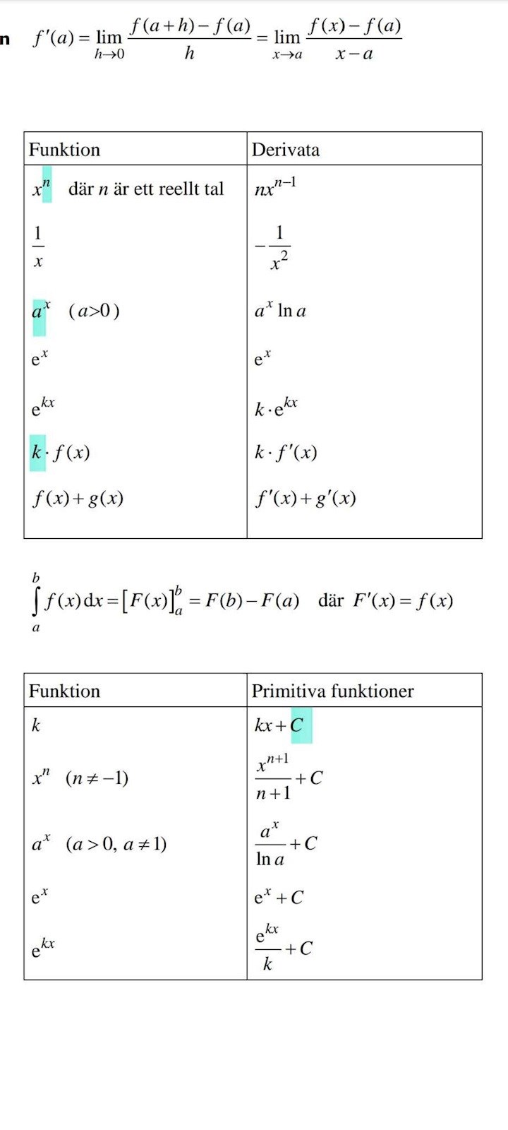 - En additiv konstant blir C (exemplet med primitiva funktioner).