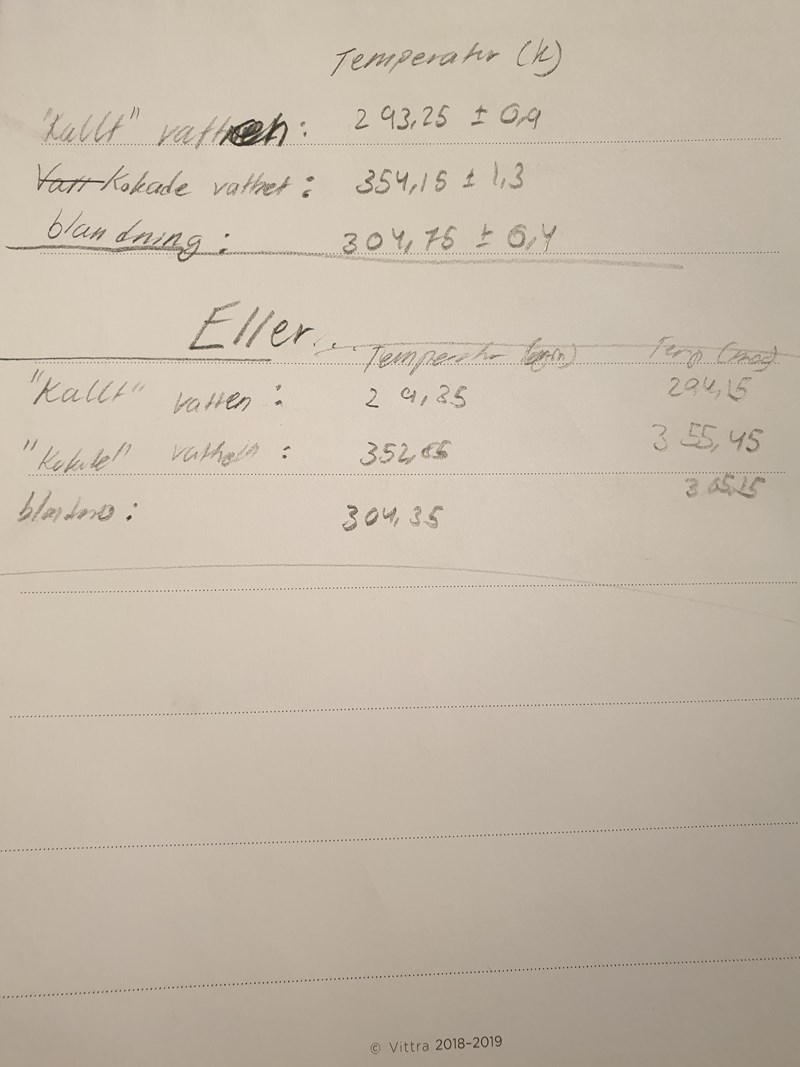 "mät vattnets temperatur" Vill bara nämna att vi använde en Labquest så det blev inte ett specifikt värde.