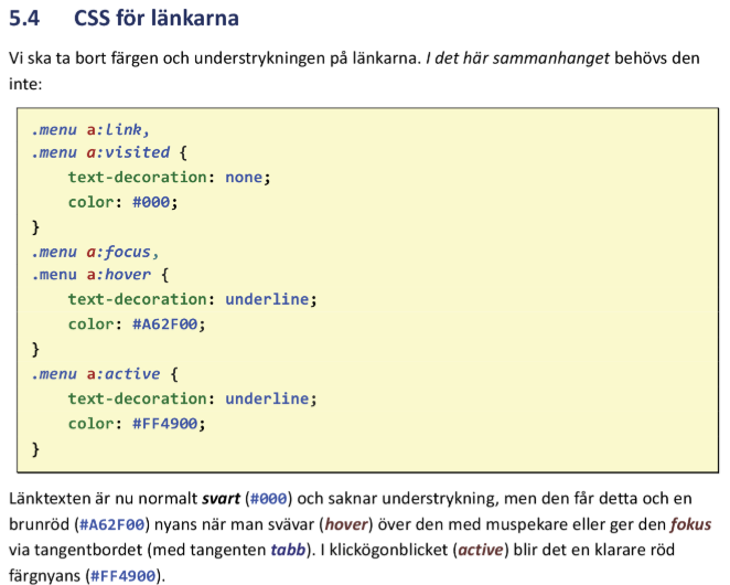 Vad innebär de olika typsnitten a i rött? Och hur skriver jag dom i koden? Jag får bara till det översta a:et. Boken beskriver inte så detaljerat som jag önskat..