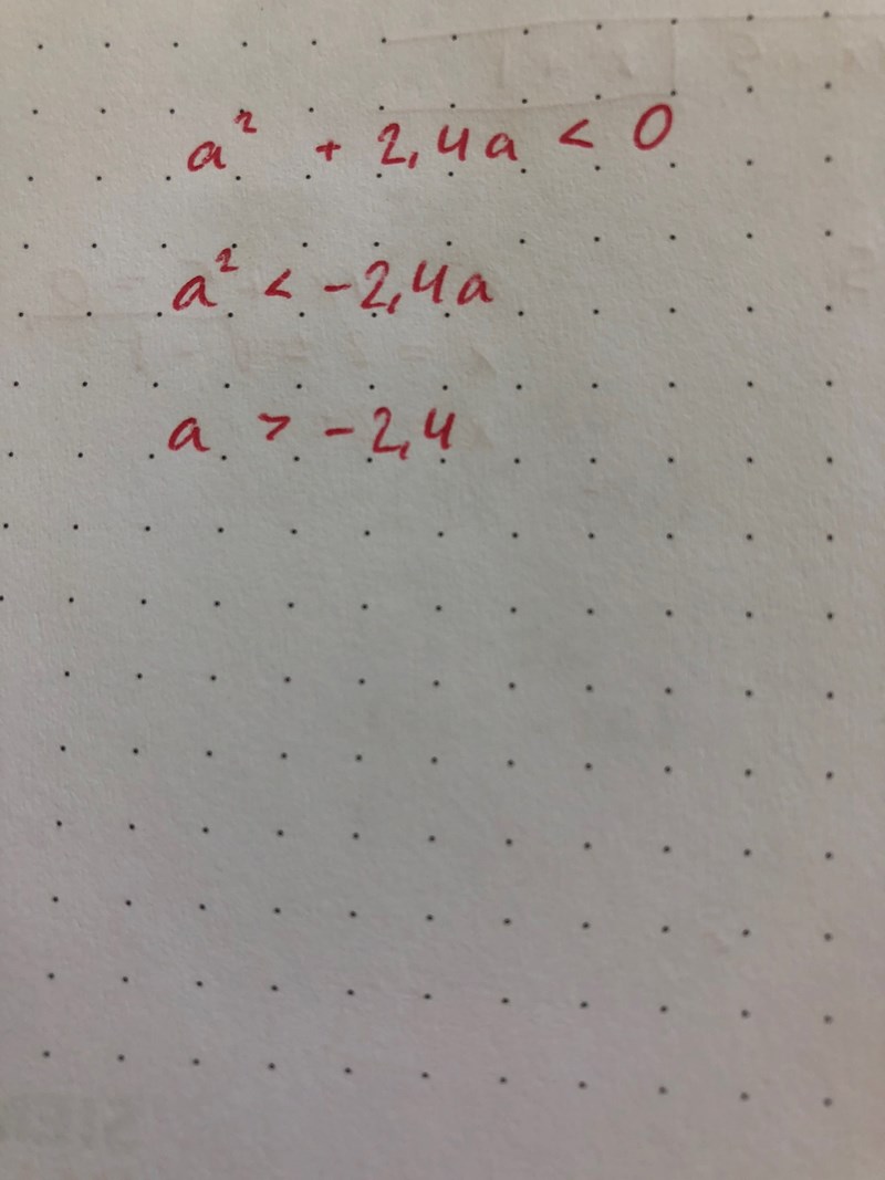Har jag löst olikheten korrekt? Jag byte sida på olikhetstecknet när jag dividerade med a i sista steget eftersom a är negativt.