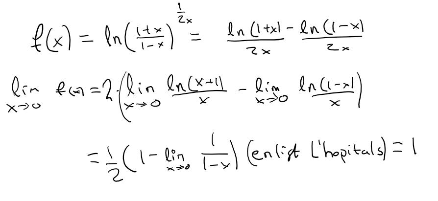 Du skriver ”Jag har konstaterat att limx-->0 = 1 ” och det förstår jag inte. Går x mot 1 när det går mot 0??