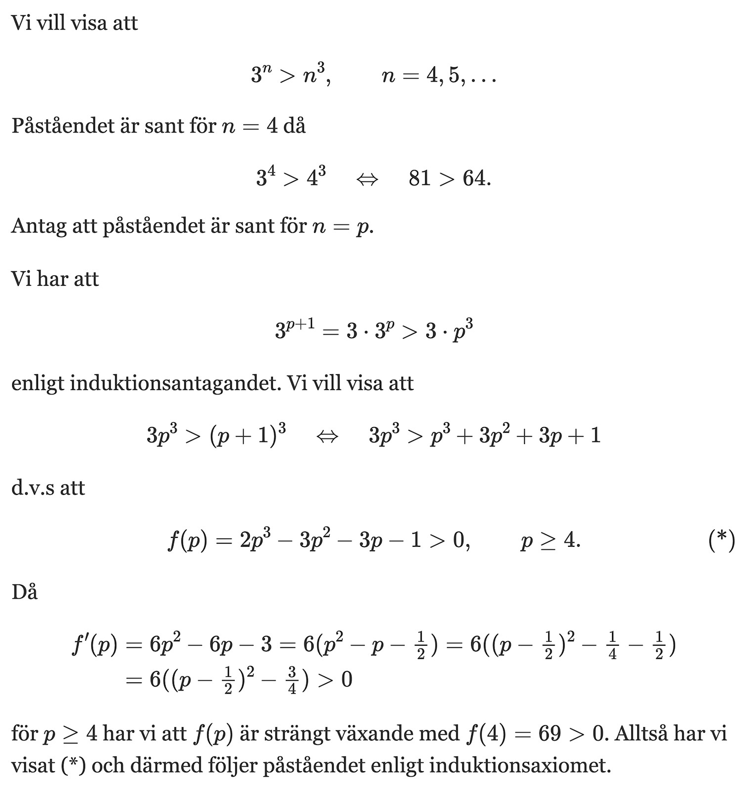 1) Induktionsbasfall där jag satte in n=4 --> olikheten stämde
