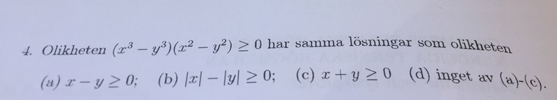 Båda termer måste antingen vara positiva eller negativa så y kan vara större än x så a och b gäller inte. C y+x kan va <0 t.ex x=1 y=-2