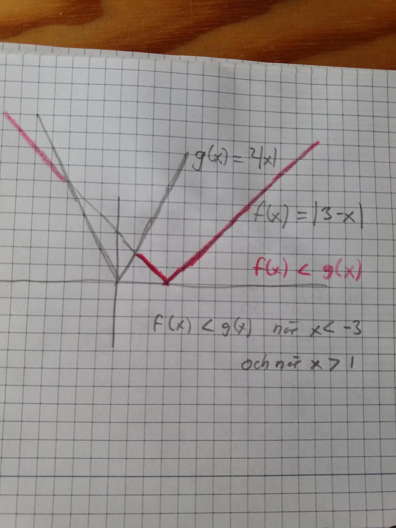 Här är |x-3|<0|x-3|<0 och |x|0|x|\geq0, vilket betyder att |x-3|=-(x-3)|x-3|=-(x-3) och att |x|=x|x|=x.