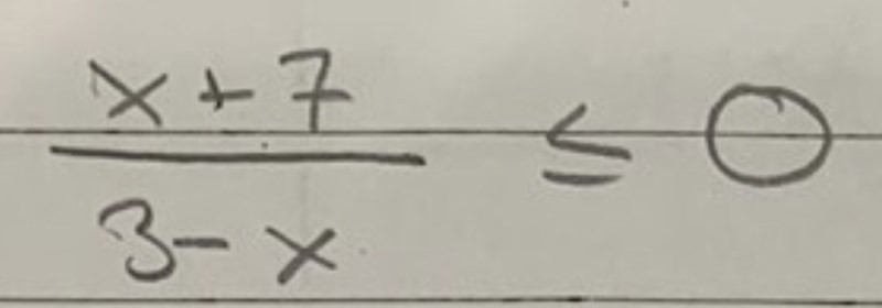 i facit står det att det blir (-oändligheten, -7) men som ni ser i teckentabell blir olikheten större än 0 när x>3