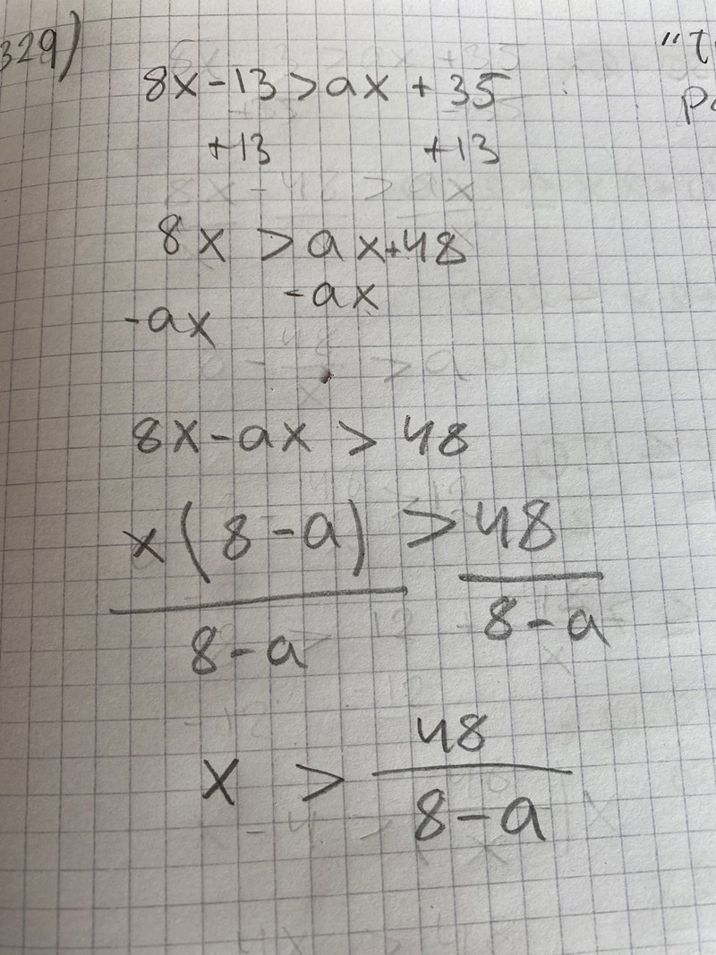 Arktos skrev:Det frågas efter vilket värde på a som ger olikheten lösningen x > 12 .
