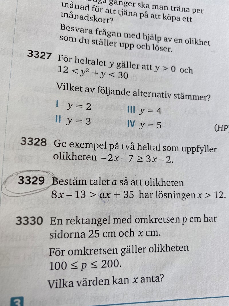 Bestäm ett värde på a så att ditt sista högerled blir just 12 .