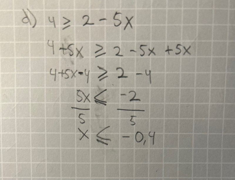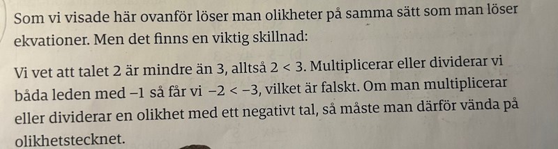 Sedan läste jag även det här i en ruta i boken och blev förvirrad och förstod inte när jag skulle vända på tecknet. Så provade lite i ekvationen men ja det blev inte rätt.