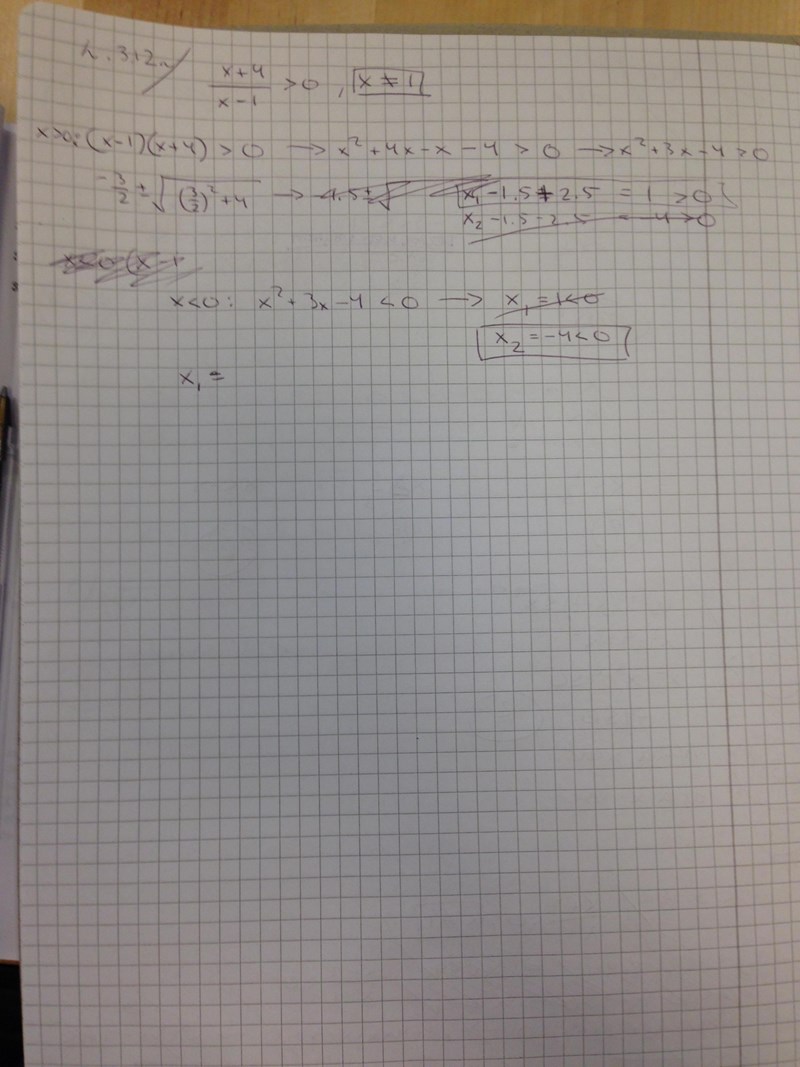 Fall 1. Täljaren är positiv och nämnaren är positiv, det vill säga och . Detta är samma sak som att ; om så är automatiskt positiv.