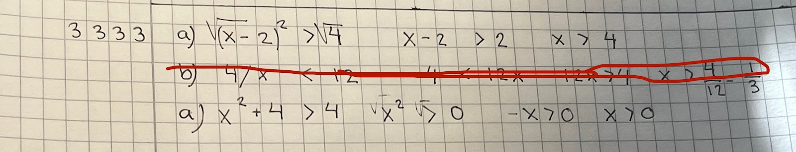 Detta begränsar olikhetens lösningar till att ligga i ett eller flera av intervallen x < 0, 0 < x < 4 och x > 4.