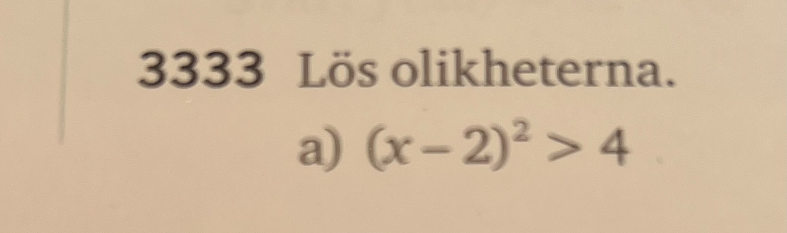 Intervall 1 (x < 0): Välj x = -1, vilket ger VL = (-1-2)2 = (-3)2 = 9, vilket uppfyller olikheten. Slutsats: x < 0 är en lösning till olikheten.