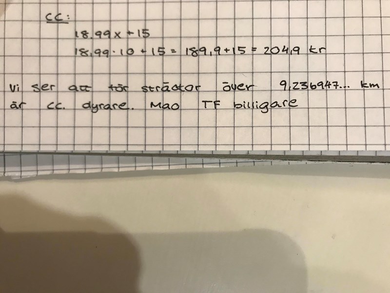 Jag har försökt att lösa uppgiften och börjat med att skriva upp det såhär men vet inte hur jag ska räkna ut den.