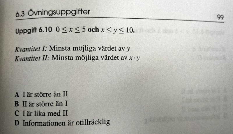 Alltså är det minsta värdet på både x och y lika med 0. Rätt svar är alltså C.