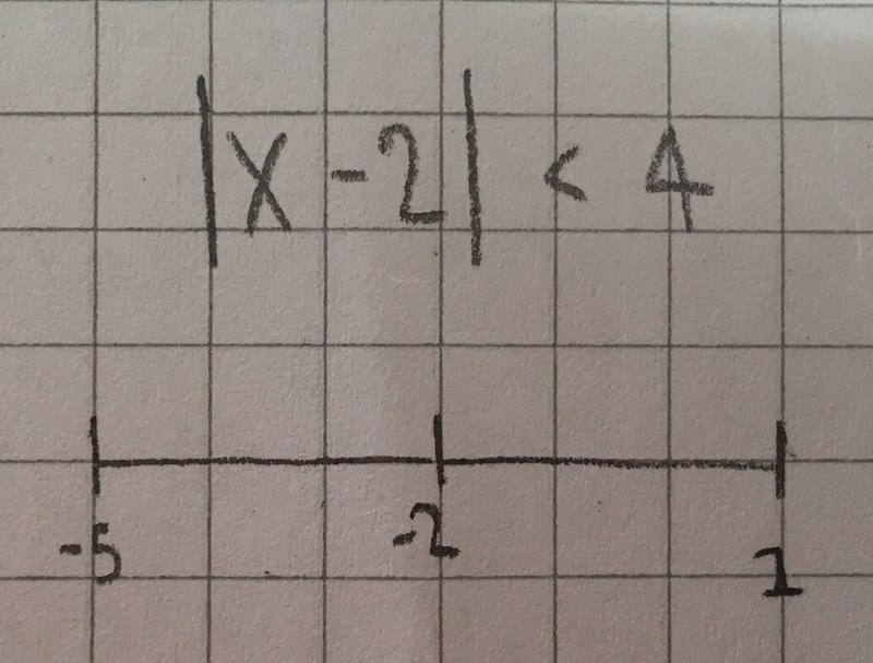 Du har tänkt lite fel. Talet i mitten av din tallinje skall vara 2. Inte minus två. Detta eftersom 2-2 skall bli noll. Lägger du minus 2 får du -4. Lägger du positiv tvåa i mitten får du fram som facit.