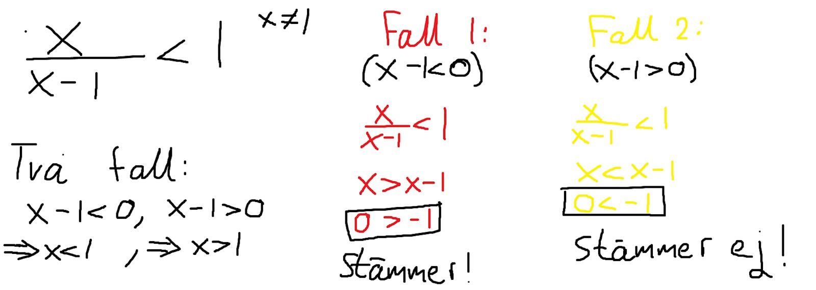 Om x < 1, vilka värden kan då x/(x-1) anta?