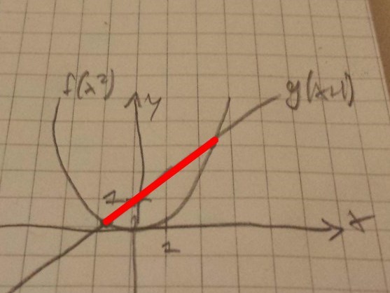 Undersök nu vilken av f(x) och g(x) som är störst, för några lämpliga värden.
