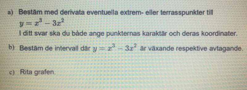 Du har fått fram att för (om de hade frågat om det), då kan du säga att funktionen är strängt växande på intervallet .