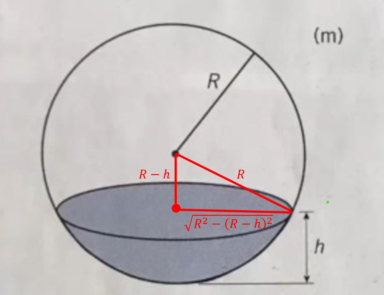 Ja, en svårighet är att hitta ett uttryck för dVdh���ℎ. Det du gjorde härovan var att försöka beräkna dVdR����, men det leder dig ingen vart eftersom R är en konstant (tanken ändrar inte volym).