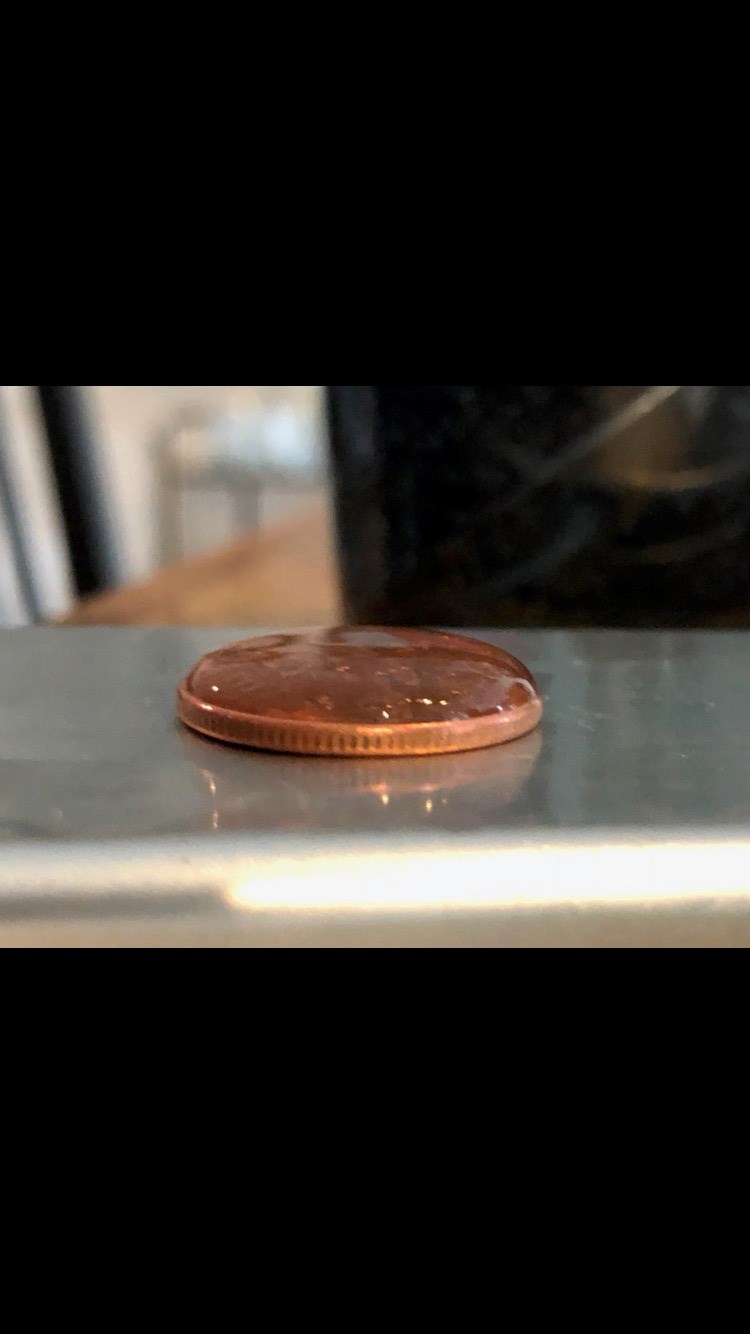 Tänk dig en vätska där adhesionen mot underlaget är enormt mycket högre än kohesionen. Då smetas droppen ut över ytan och en droppe skulle kunna dras över kanten. Vid låg adhesion händer det motsatta. Det som hindrar den från att glida över kanten är kohesionen eftersom kohesionen resulterar i ytspänning som drar "upp" den igen . Något annat som tjänar till att dra droppen över kanten är graviationen, en vätska med högre densitet kommer att uppleva en starkare nedåttryckande graviationskraft. En teoretisk masslös vätska skulle ju bara kunna sitta som en enorm sfär ovanpå myntet.